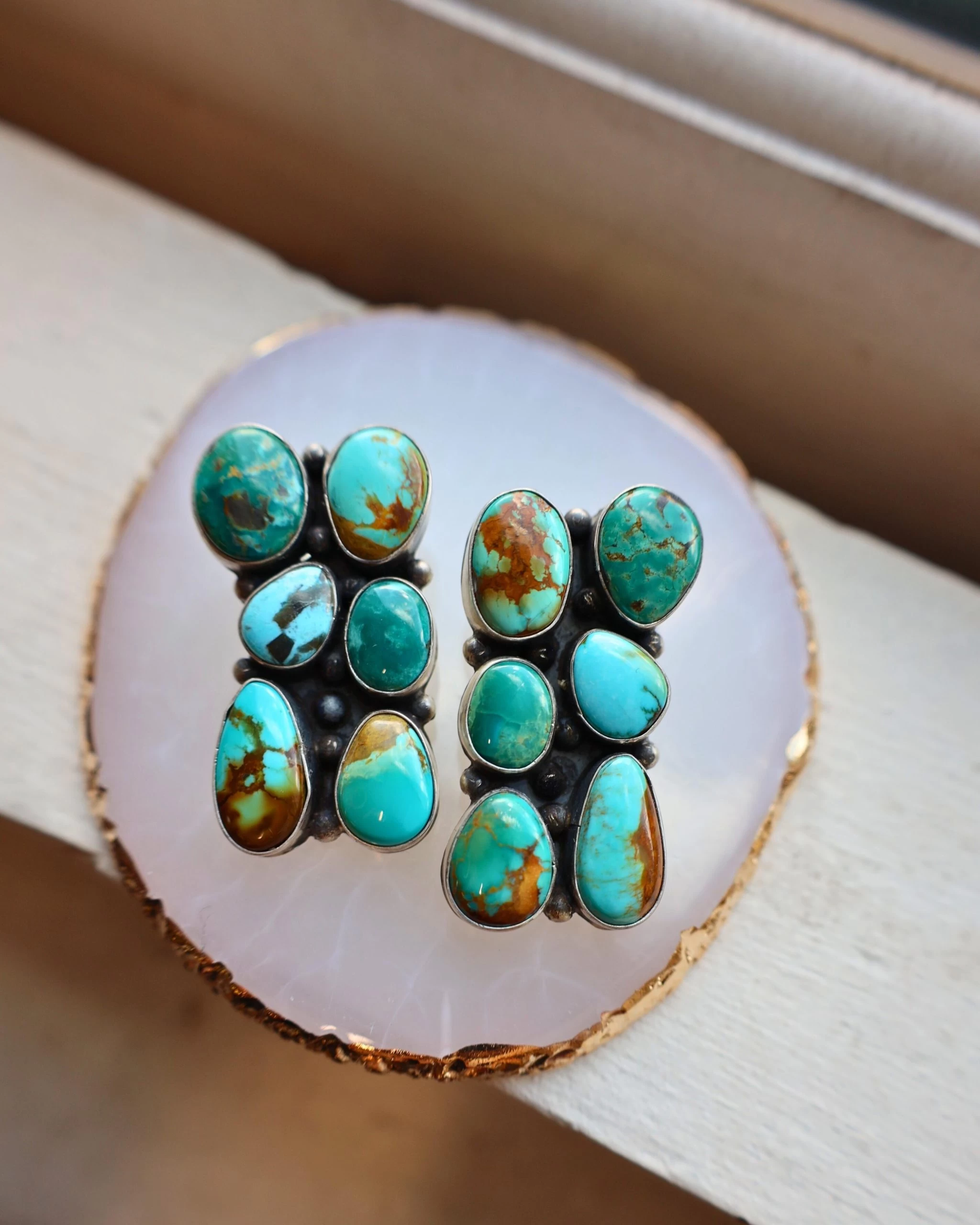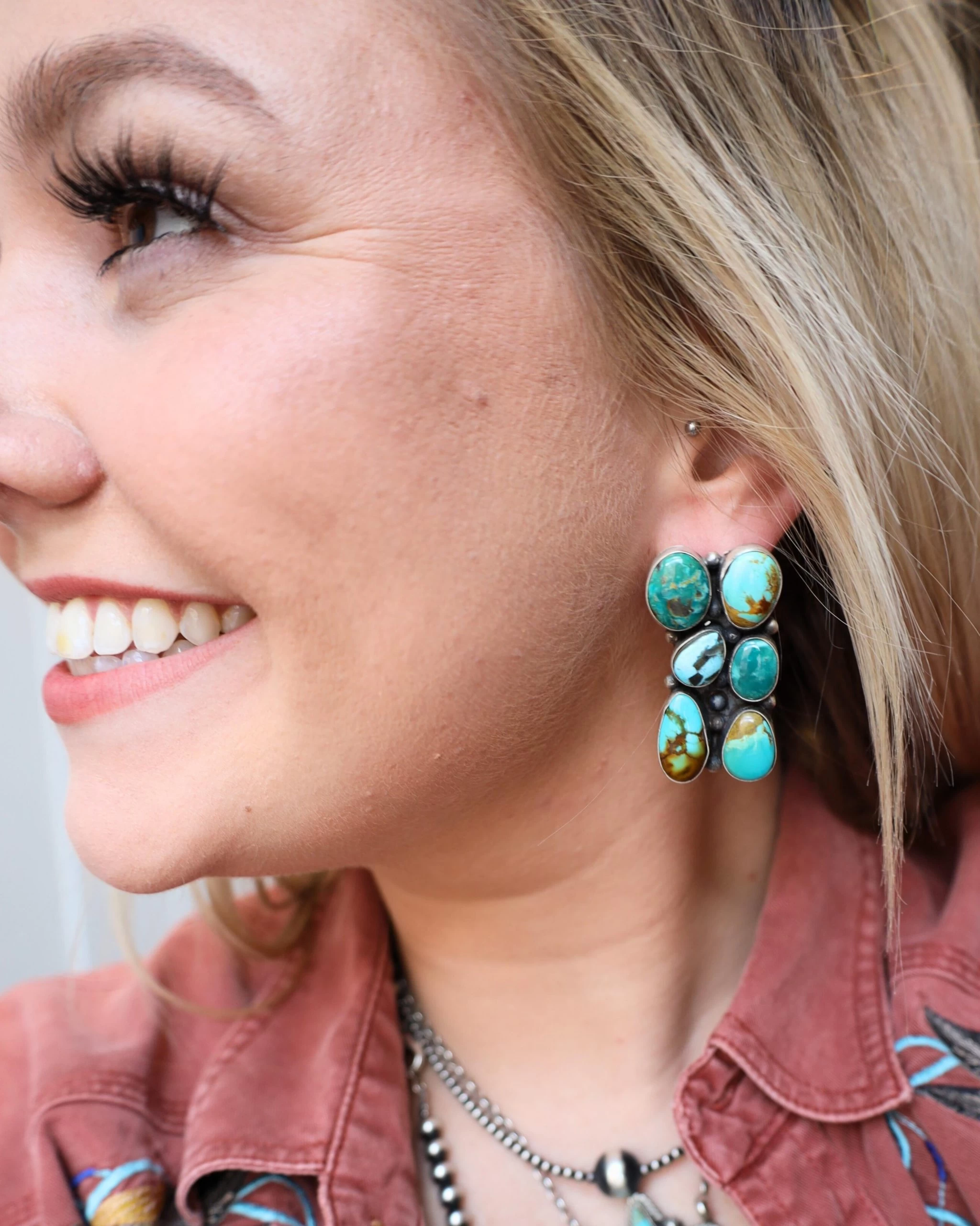 Achieve a timeless look with these chic 6-stone post earrings. Carefully crafted from dazzling turquoise and sterling silver, they’ll make a bold statement while keeping you fashion-forward. Let their brightness and detail shine – the perfect way to inject energy and personality into your wardrobe.