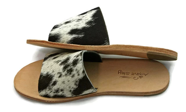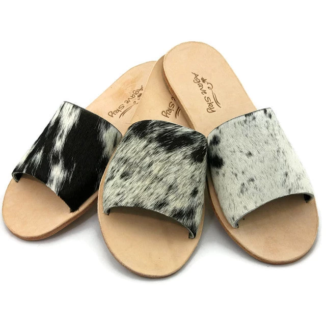 AGAVE SKY COWHIDE SLIDE SANDAL- SALT & PEPPER