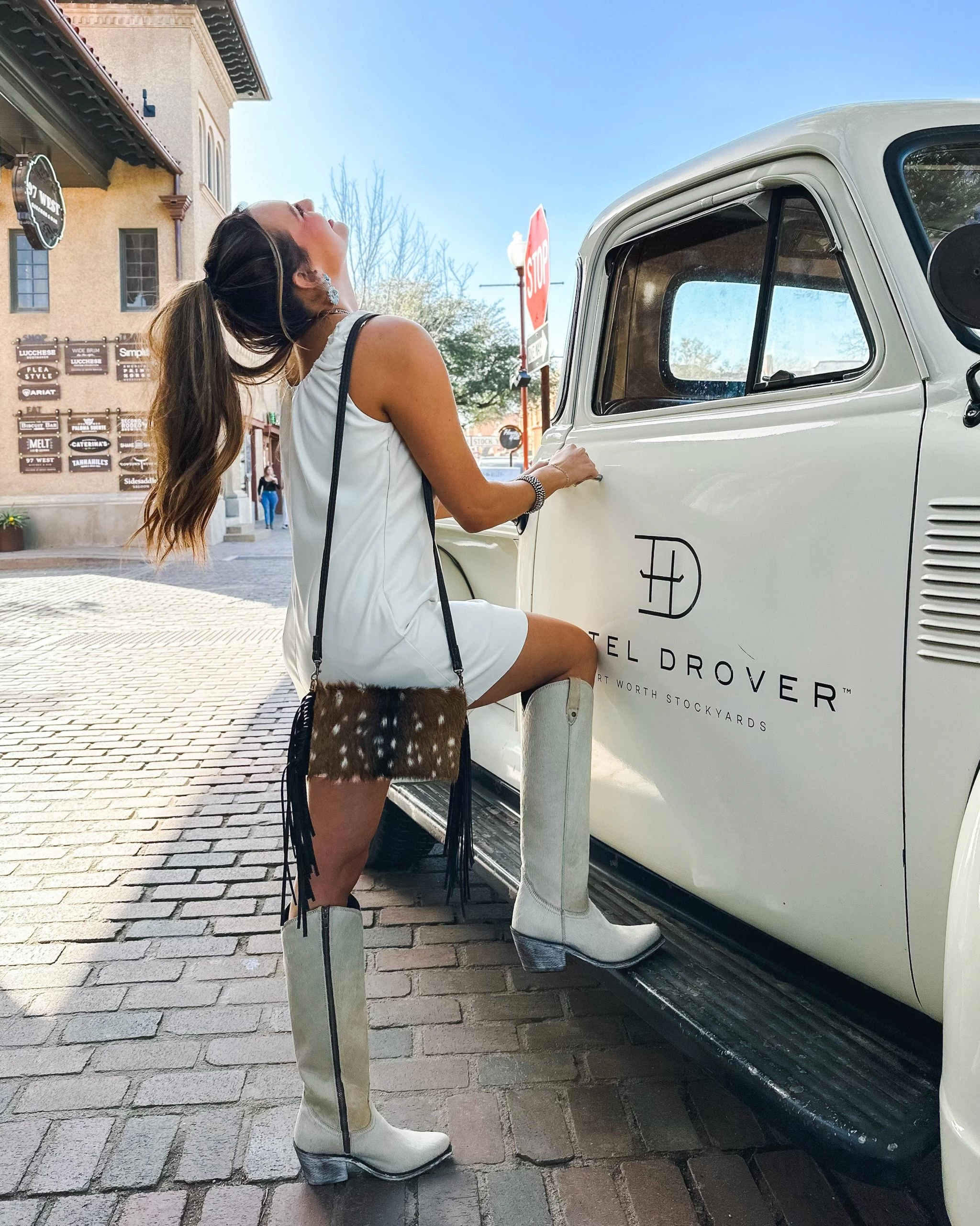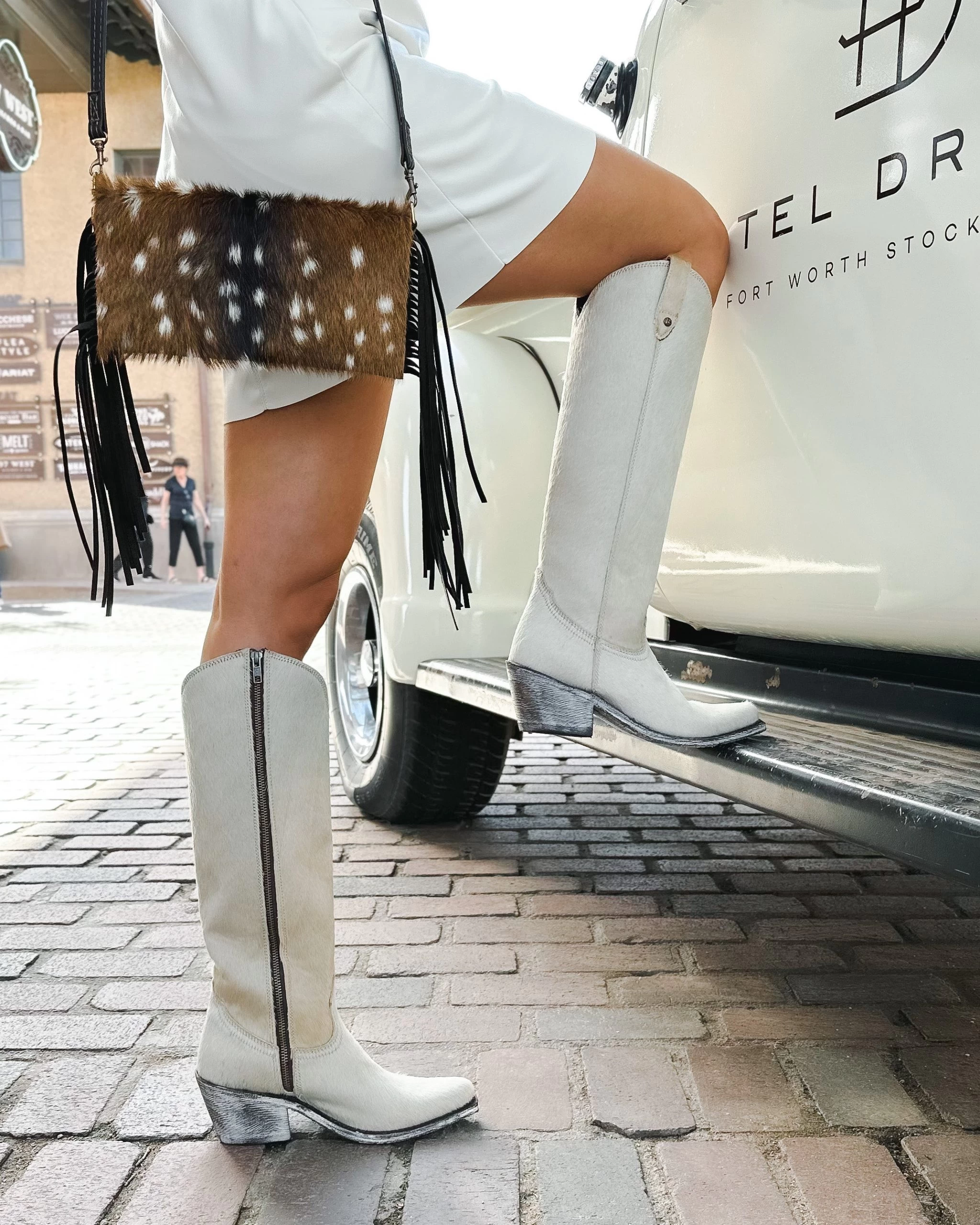 Introducing our beautiful and stylish purse crafted from high-quality axis deer hide. Measuring at 10″ x 5.5″, it is perfectly sized to carry your essentials while still being compact enough to fit comfortably under your arm. The purse comes with a removable strap for versatile wear, allowing you to effortlessly switch between a shoulder bag or a clutch.