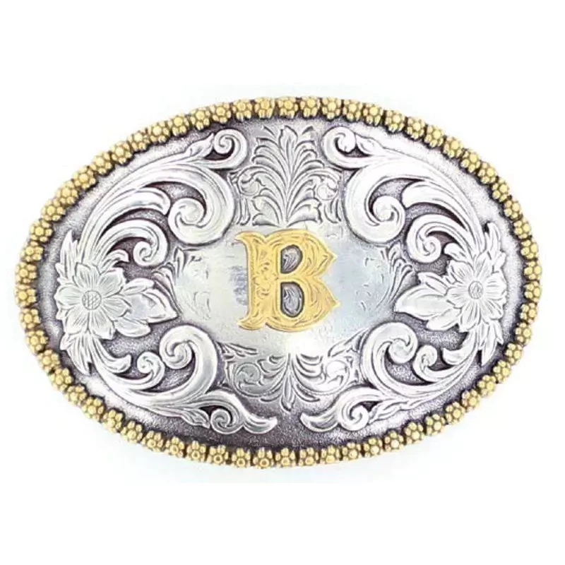 This belt buckle by M&F Western Products is made to make you look sharp! This is a very nice belt buckle that fits most size belts and has your traditional belt loop fastener that is easy to slide on and off. This buckle is made to shine up your outfit! Put this on your favorite leather belt and you will be ready to make your best impression. This M&F buckle is made with silver and is with detailed engraving that makes this buckle unique.