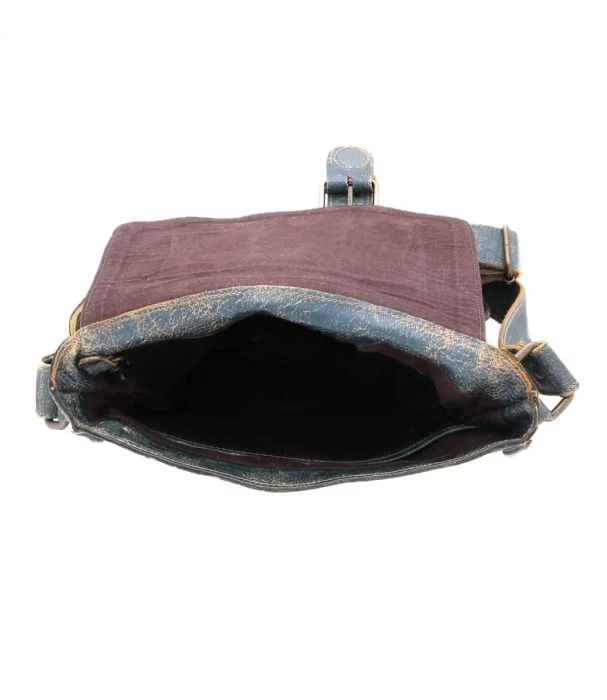 - Functional flap opening with heavy hardware buckle closure