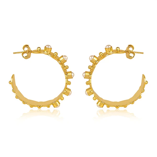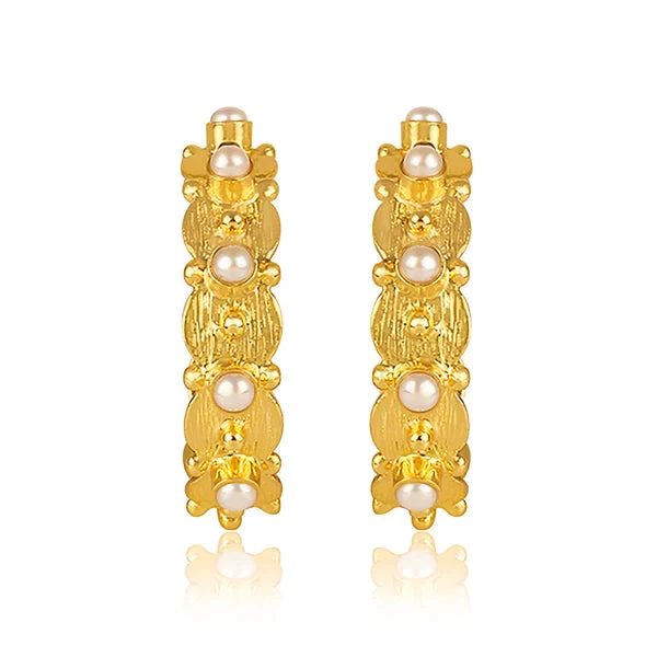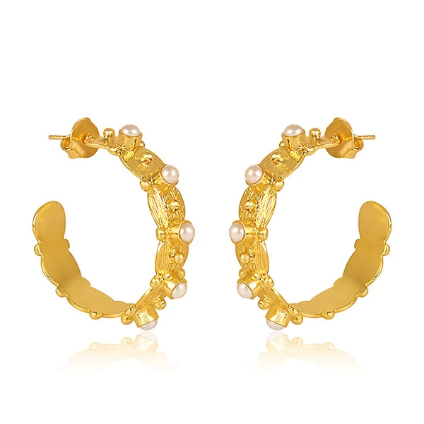 Sweet and oh-so stylish, the Honeysuckle Hoop Earrings are a stunning look. Featuring florets crafted from 18K gold-plated brass with pearl accents at the centers, these Hoop Earrings are equal parts charming and glamorous. Pair the Honeysuckle Hoop Earrings in Pearl with your favorite everyday or evening looks, either way the combination is pure perfection.