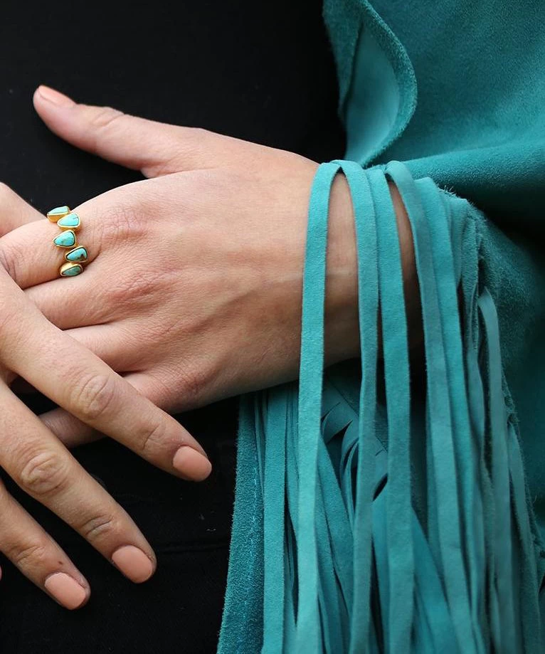 This simple ring band is a great go to ring. Triangular stones are set in a zig zag pattern to bring interest to this simple style.