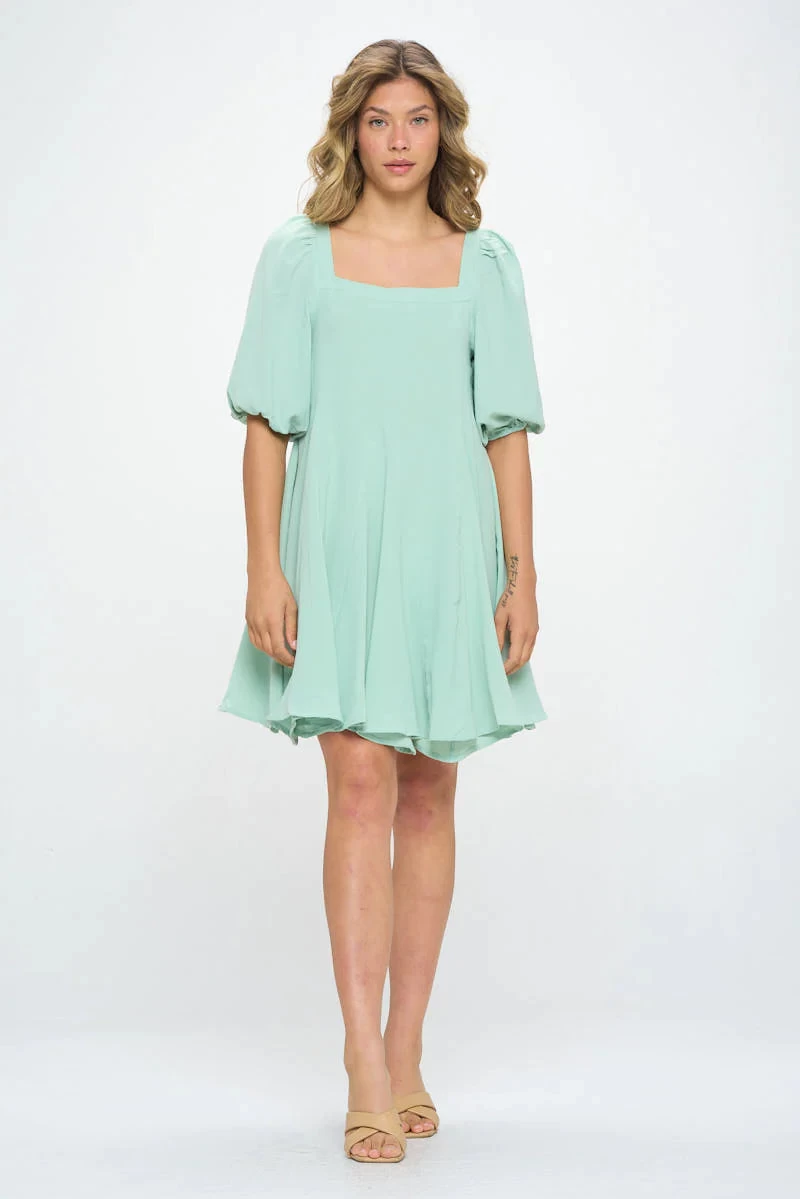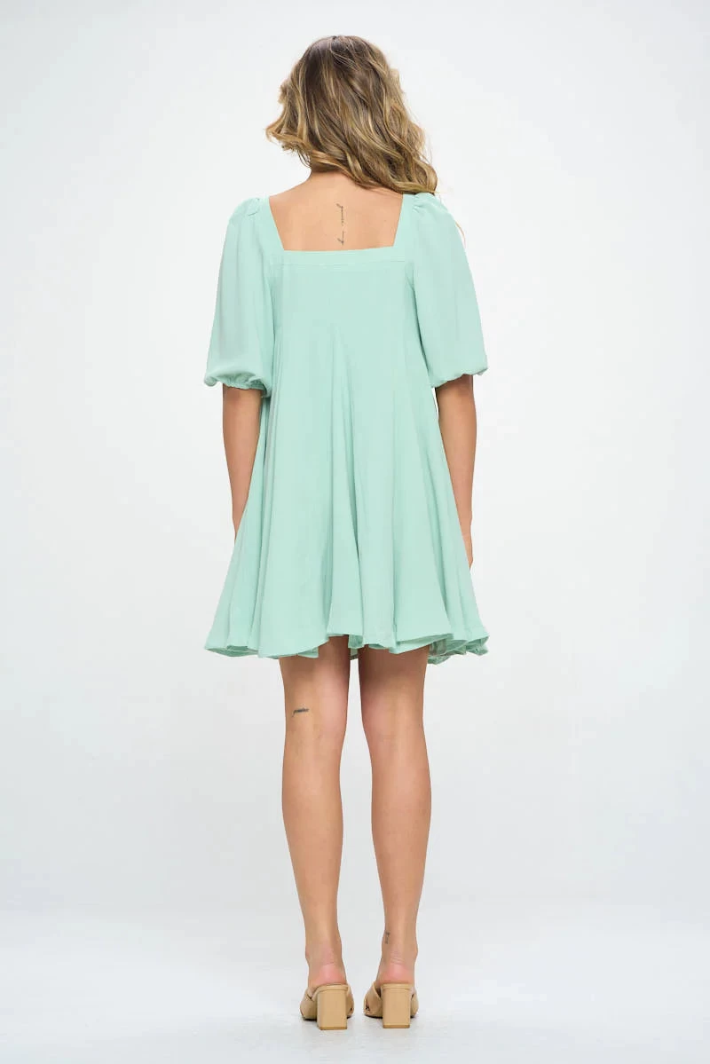 Make a statement in the Colletta Chiffon Baby Doll Dress! Defined by a beautiful seafoam green hue, a flattering square neckline, and puffy sleeves, this dress has all the elements for a feel-good look that you’ll never forget. Plus, the side zipper ensures a perfect fit! Dare to stand out and express your unique style – get your Colletta Baby Doll Dress now!