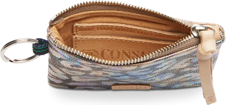 The Pouch is an easy, all-in-one bag to keep your cards and cash organized and on hand. An attached metal keyring takes the Pouch from your bag to keys with ease.
