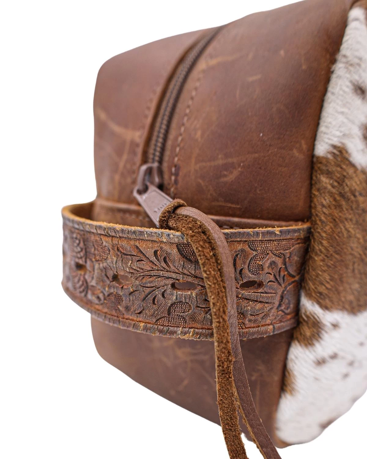 All the essentials and more can fit in the Cowhide Carry-All Bag by Two Bar West! This perfect travel bag features a beautiful cowhide and smooth leather exterior and canvas lining with an interior zipper pocket. This beautiful and versatile bag makes packing so easy and look so good!