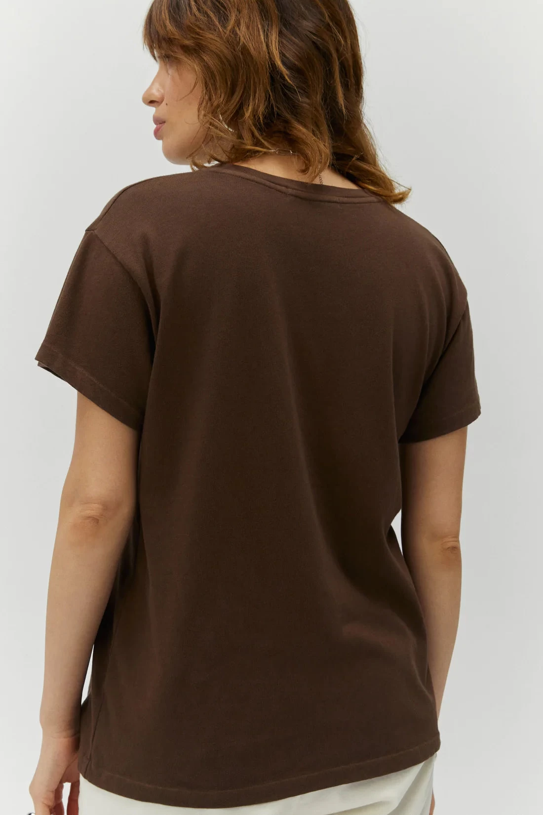 Made from a heavier loose knit cotton jersey, the tour tee features an open feminine neckline and ultra flattering draped sleeve. With a length that shows off all your assets, this style is accented with classic vintage blind stitch
