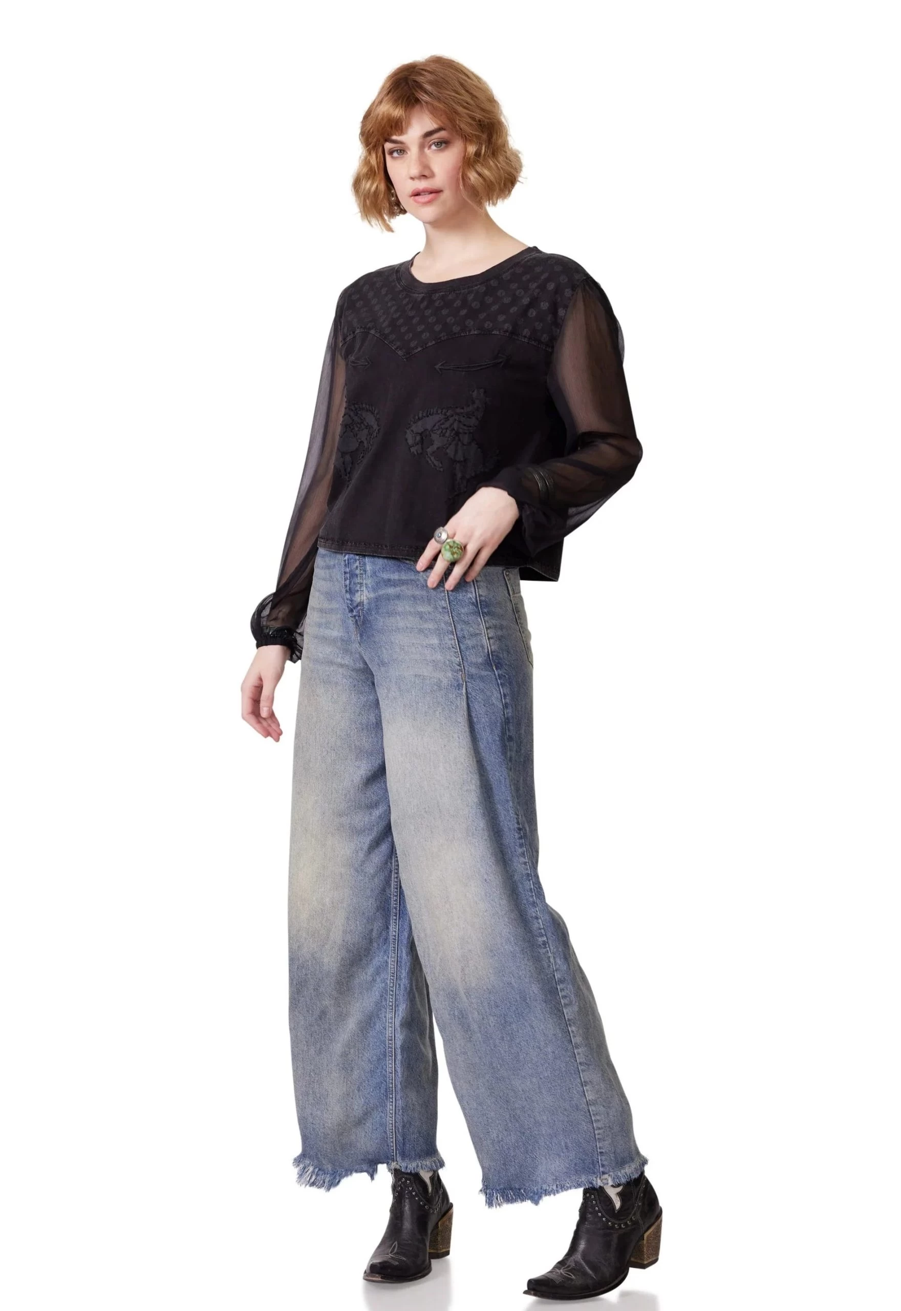 Monochromatic, mega dramatic! This chic top makes the most of bold black in a cotton shell embellished with tonal embroidery and complemented with sheer sleeves. Easy-to-wear elegance.