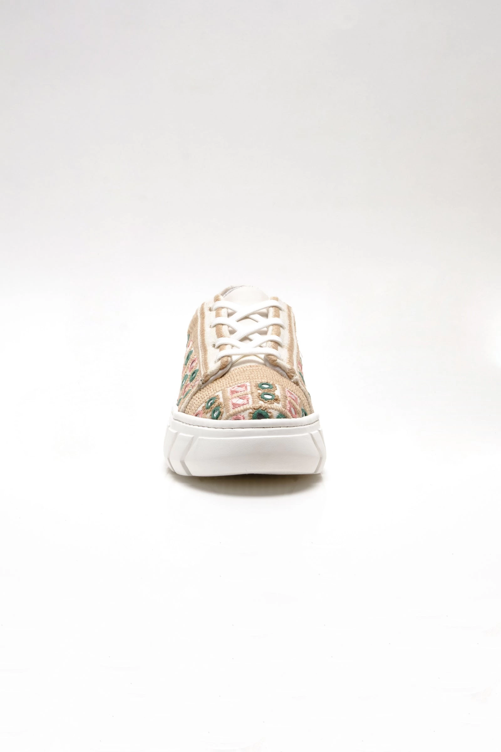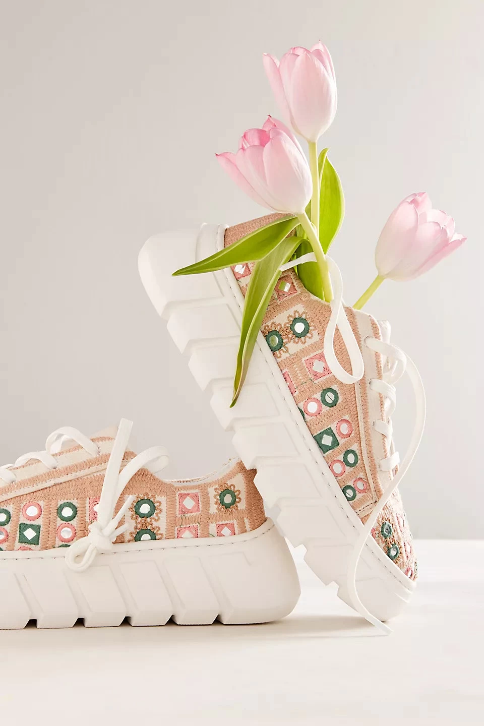 So bohemian-inspired and seriously unique, these effortlessly cool sneakers are featured in a lace-up style and low-top silhouette with a hand crocheted upper, woven floral details, and a chunky lug sole.