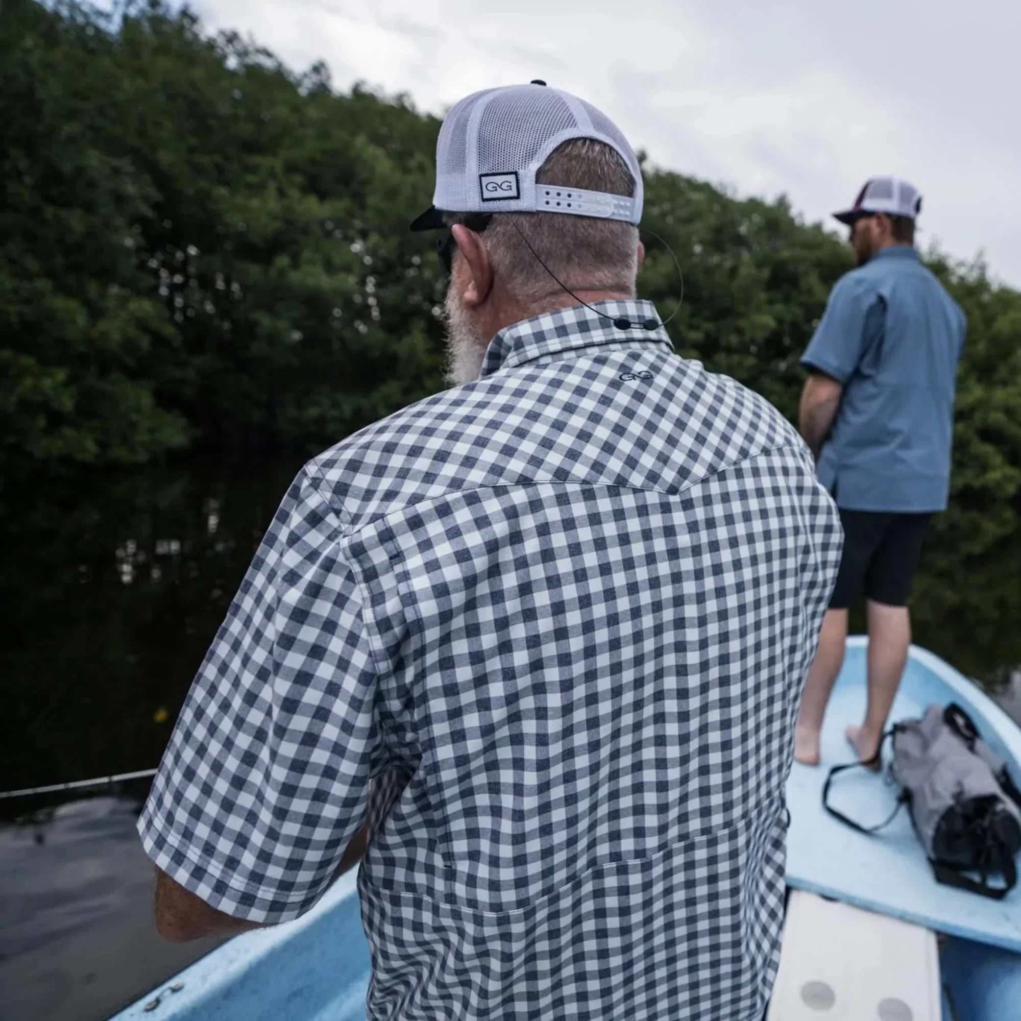 The GameGuard Pearl Snap shirt has everything you want in a classic look. Our Pearl Snap shirt is made with a four-way Mechanical Stretch material in distinct check patterns with coordinating pearls, so you can channel your inner cowboy while enjoying wrinkle-free, stain-resistant, and UPF 30+ benefits time. – with vertical venting at the back.