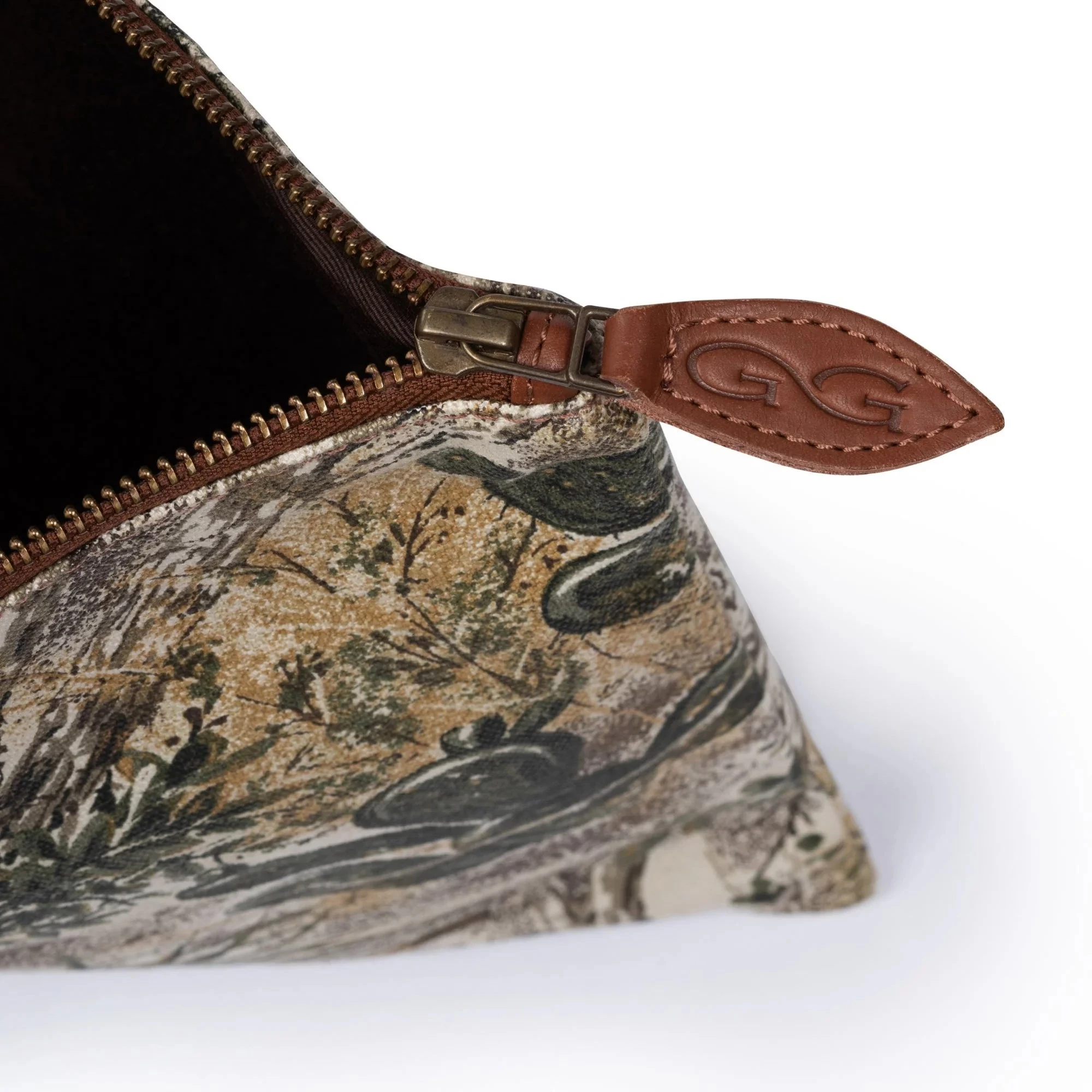 The GameGuard Signature Zipper Pouch, crafted from durable cotton canvas, is the ideal accessory to have on hand and is sized to fit your tablet, journal, or even a small laptop.Overall Measurements:15.25″ length x 11″ height
