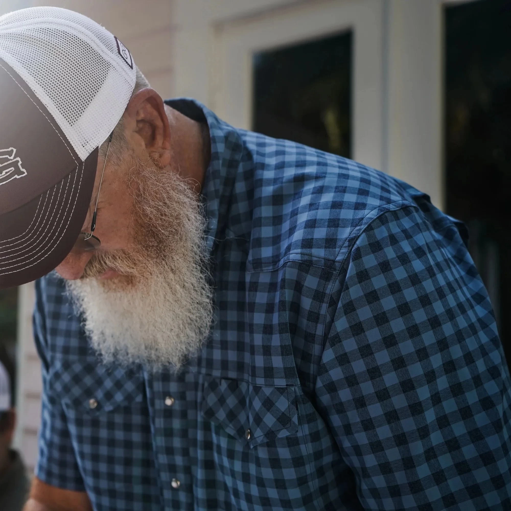 The GameGuard Pearl Snap shirt has everything you want in a classic look. Our Pearl Snap shirt is made with a four-way Mechanical Stretch material in distinct check patterns with coordinating pearls, so you can channel your inner cowboy while enjoying wrinkle-free, stain-resistant, and UPF 30+ benefits time. – with vertical venting at the back.