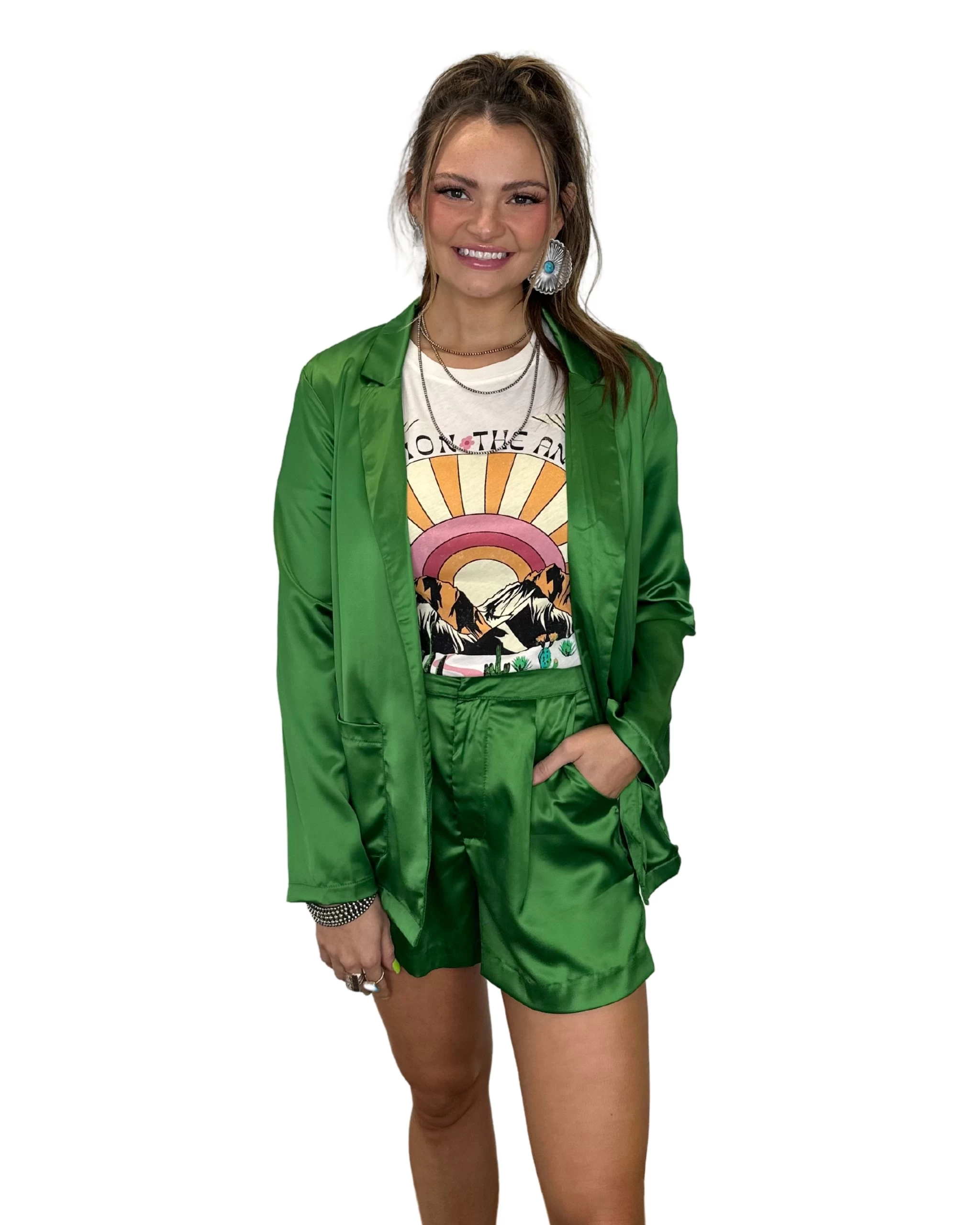 Discover the ultimate mix of style and comfort with the Glam Front Pocket Blazer. Created with gorgeous, lush silk, this vibrant green blazer can take you from day to night with the simple addition of dressy accessories. It’s the perfect way to add a trendy twist to your wardrobe and make a statement that stands out from the crowd. Get ready to look and feel amazing!
