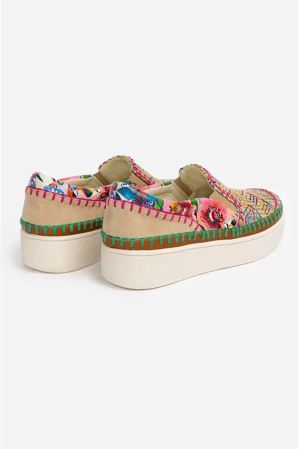A vibrant synergy of color and textures, the Patchwork Slip-On Sneakers turn a practical style into a statement-making icon. These slip-on sneakers boast a round toe, elasticated panels at the sides, colorful whipstitching, a flat durable sole, and a medley of patterns and flourishing blooms. Team with a tee and shorts during the warmer months and switch to jeans and a cozy knit as the cooler weather rolls around. Product Details: • 100% Leather Upper 100% Suede Shaft  • Care instructions: Spot clean with dry cloth.
