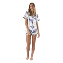Our Women’s Pajama Shorts Set — is cut in a timeless silhouette with classic piping detail. The shorts’ elastic waist and adjustable ribbon tie ensure a custom, universally flattering fit. Add a bespoke touch with your choice of monogram.
