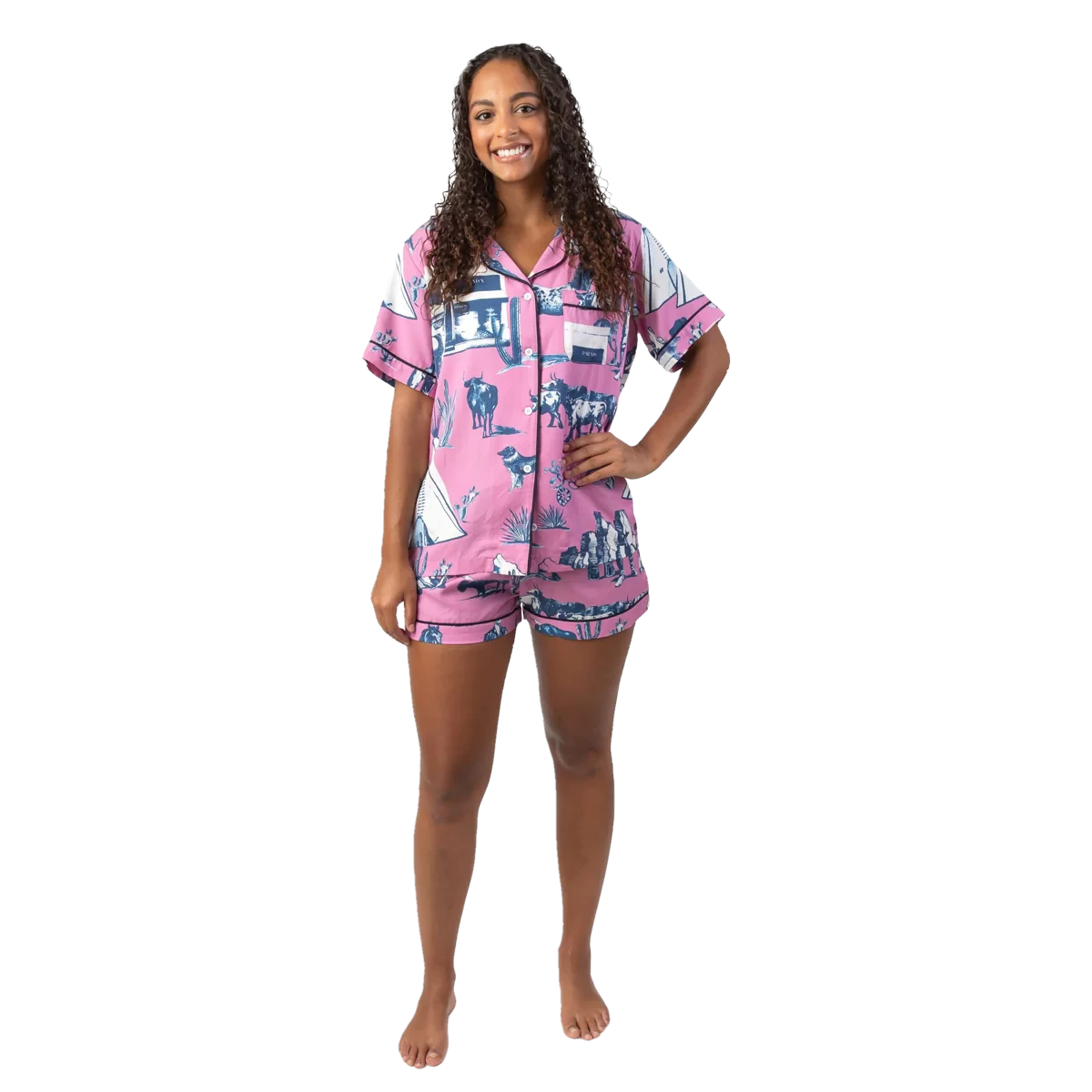 Our Women’s Pajama Shorts Set — is cut in a timeless silhouette with classic piping detail. The shorts’ elastic waist and adjustable ribbon tie ensure a custom, universally flattering fit. Add a bespoke touch with your choice of monogram.