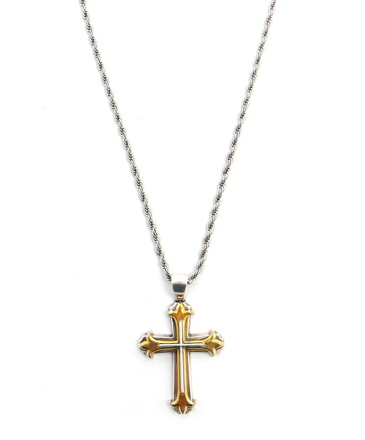A classic choice for traditional men. The Layered Cross Necklace features a crossed pendant with several crosses layered on top. The removable pendant measures 2-3/4″ by 1-5/8″ and is on a 24″ rope chain with lobster clasp.