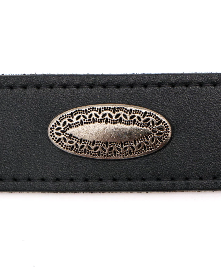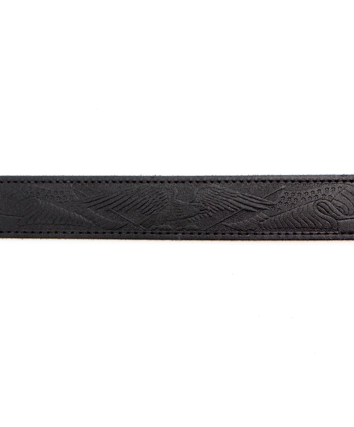 Since 1970, Marc Wolf has crafted belts out of the finest leathers available. This 1-3/8″ black belt is created from one solid piece of top grain, oil tanned harness leather. It features a 2″ square buckle, three oval conchos and an Eagle soaring between two American flags stamped between the conchos. Pairs well with dress jeans and a pair of black boots.