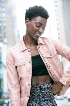 Our new version of the Jessie- a beautiful “denim” styled jacket, but in your favorite lambskin leather.