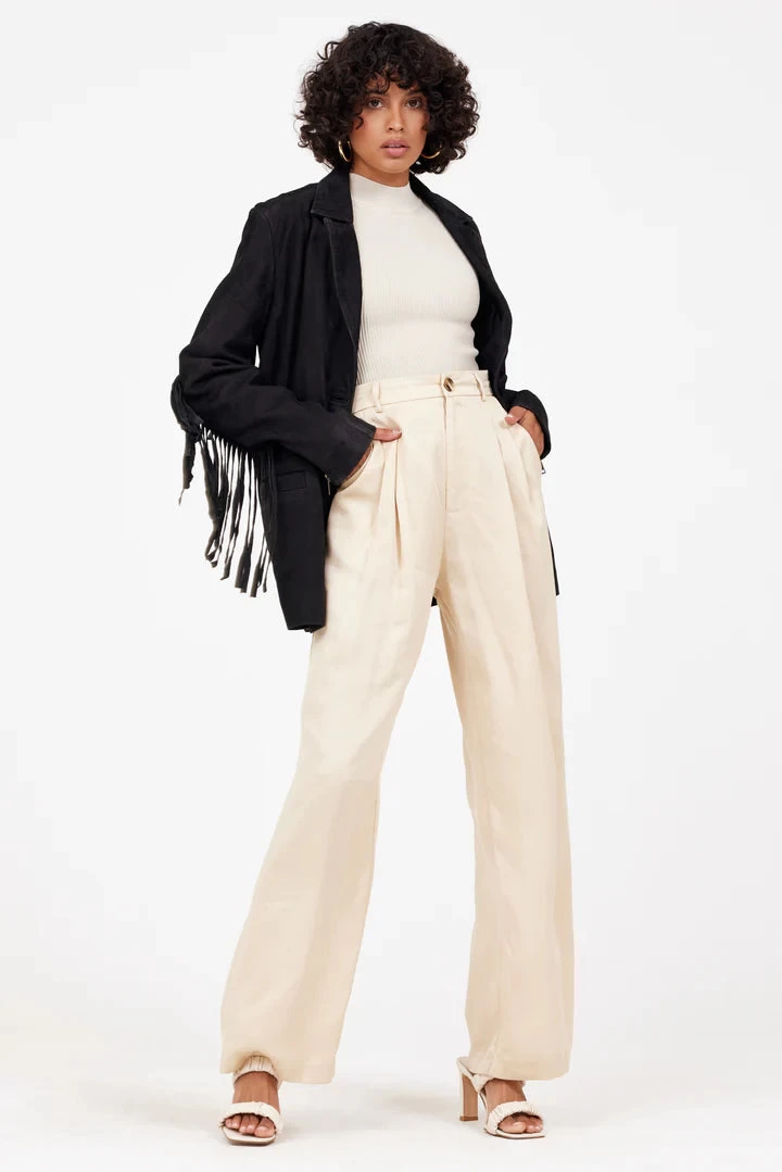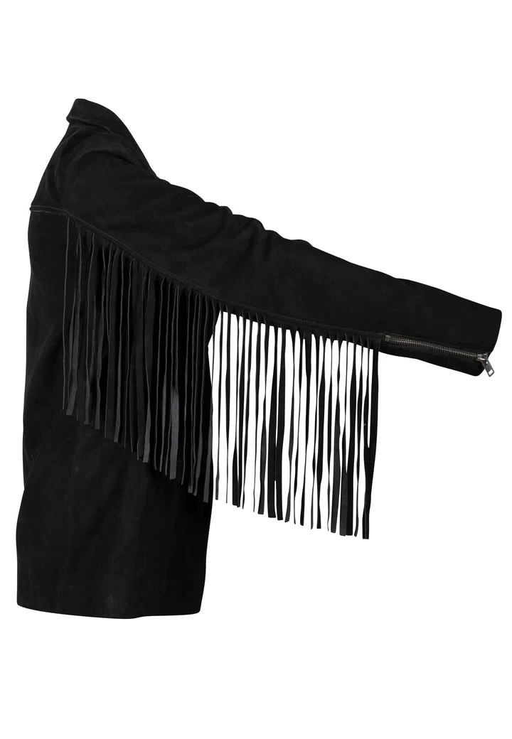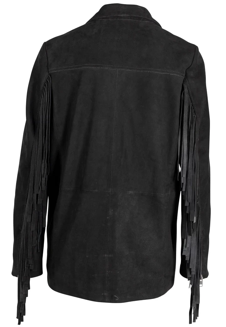 Our blazer styled leather jacket in soft nubuck leather, with fringe down the arms.