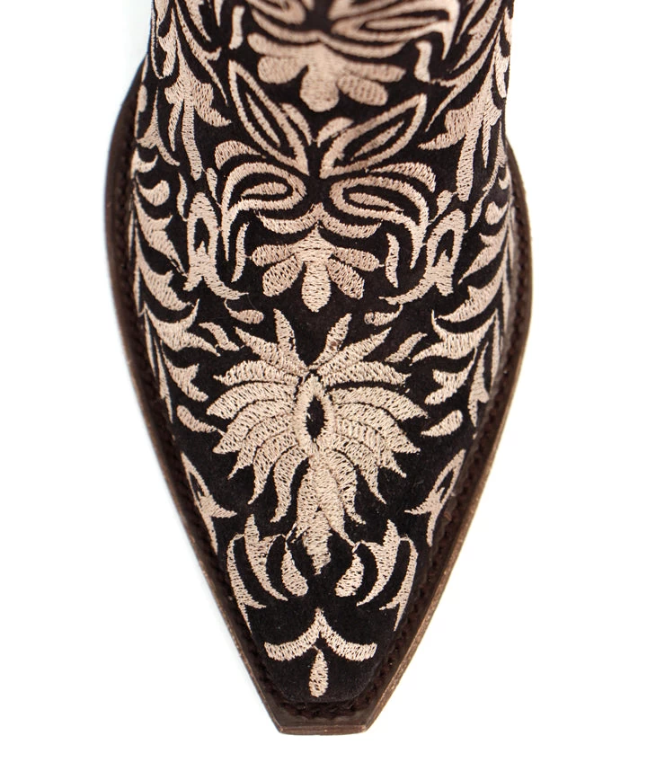 The Old Gringo Boot company is unmatched when it comes to cowgirl boots featuring floral embroidery. It’s no wonder we fell in love with Wink. We love the black leather, the off white thread, and chic stud work. Interior side zippers add extra convenience, and the higher boot heel gives off a classy country look. The Old Gringo Wink Boots in black are fierce and flirtatious!