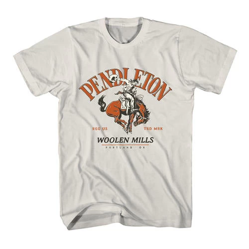 Heritage T-shirts celebrate Pendleton’s history, logos, blanket patterns, and authentic connection to America’s landscapes. Water-based and discharge prints have a soft hand.