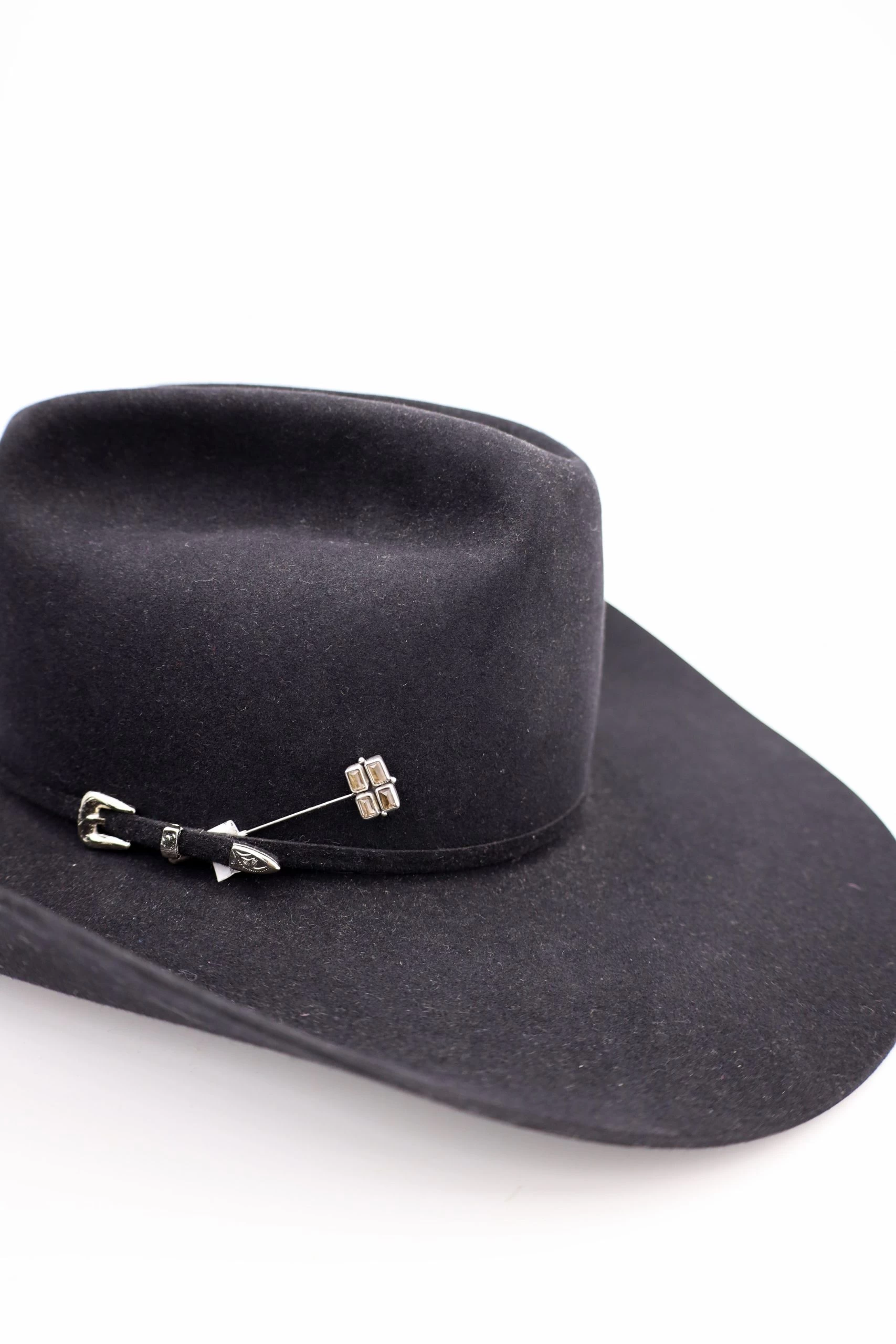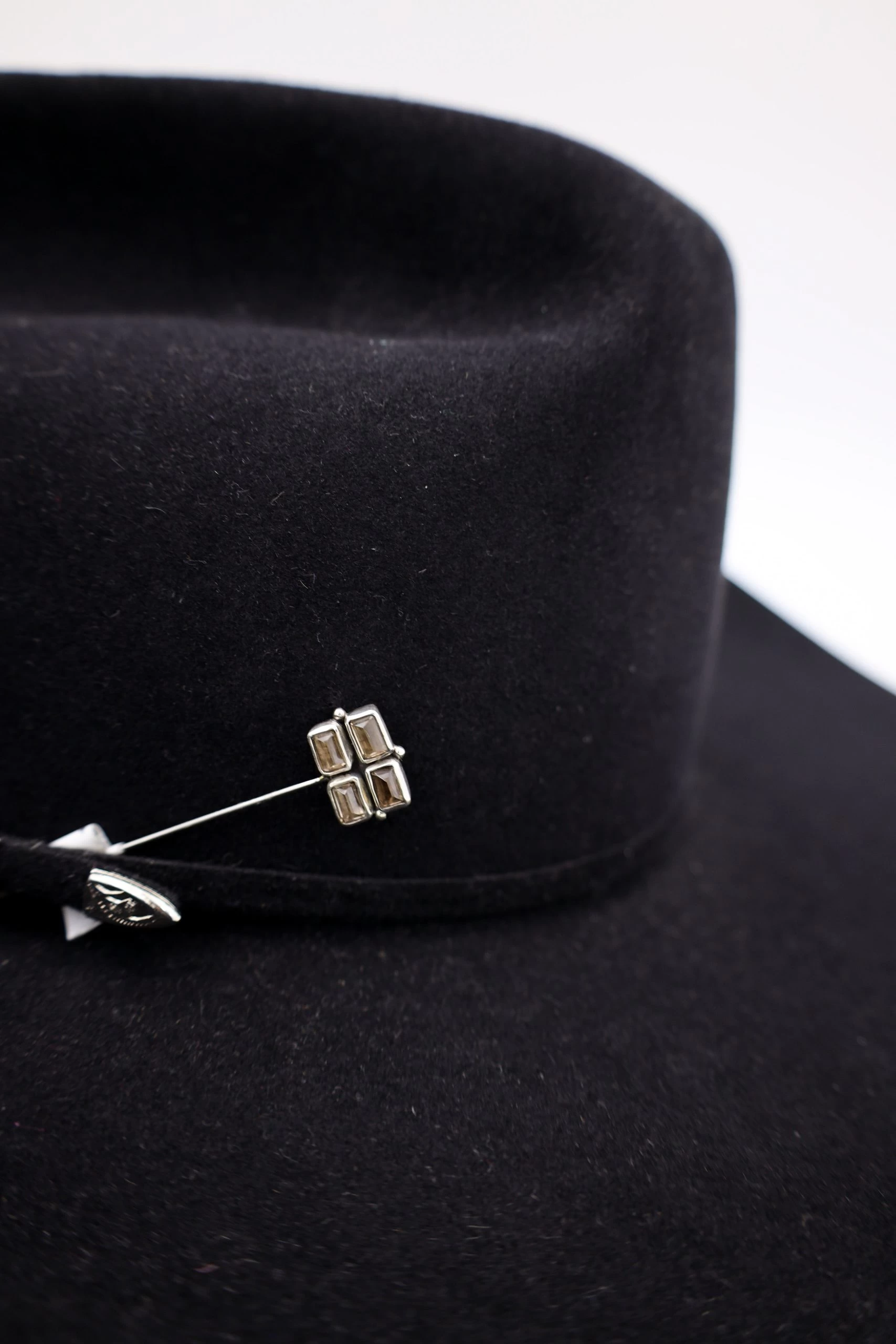 Make a statement and customize your cowboy hat with this one-of-a-kind Peyote Bird Four Smoky Gems Stick Hat Pin! Ideal for adding a touch of glamour and sophistication, this pin is sure to turn heads with its shimmery, smoky gems. Show off your unique style and get noticed today!