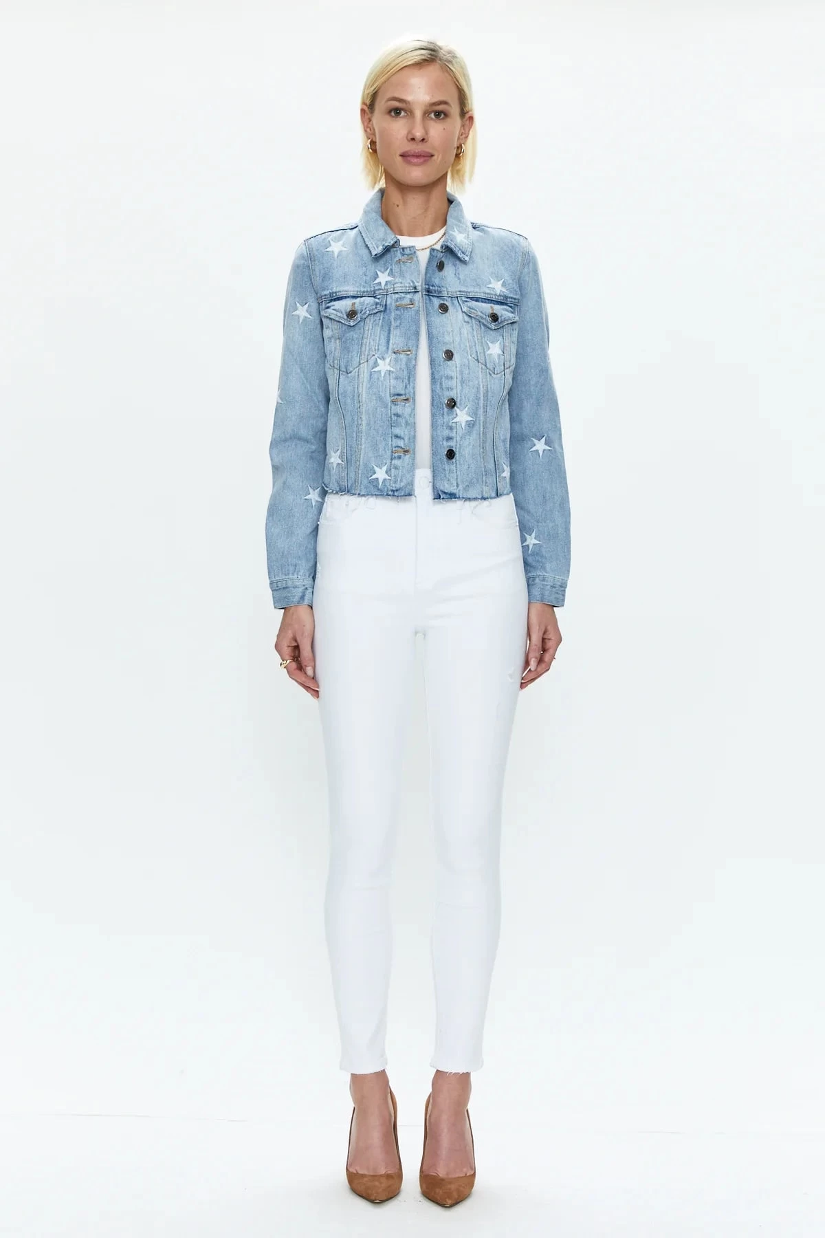 The Brando is a classic fitted denim jacket. This style in the Zodiac wash features all over star embroidery.Â