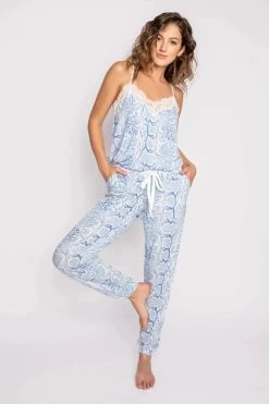 DESCRIPTION:Â A twist on your favorite sleepwear – a strappy camisole top – in drapey, stretchy modal jersey. You’ll love the P.J. Salvage Feeling Snakey Camisole modern electric blue snake print trend. Model is 5′ 10″, wearing size small.This style was made in a *Women Empowered Factory (*At least 51 percent owned, controlled, or managed by a woman or women.) Model is 5′ 10″, wearing size small.