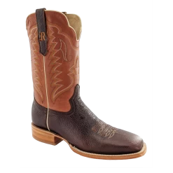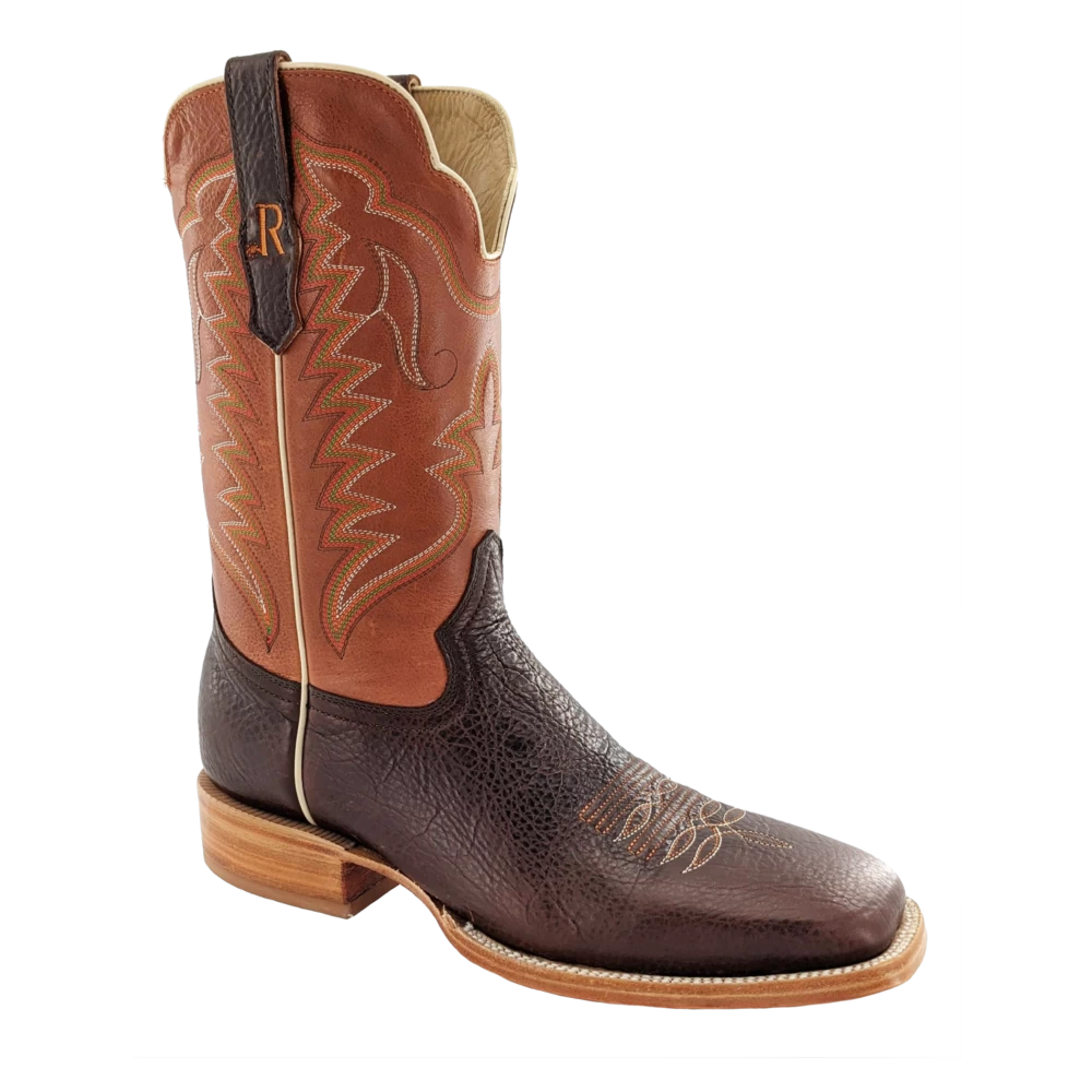 R. Watson presents these walnut cowhide and cognac sinatra cowhide western boots. These boots have a 10 row stitch pattern, R. Watson comfort system, all leather stacked heel, counters, solid steel shank, and 10 iron outsole. 11″ total in height.