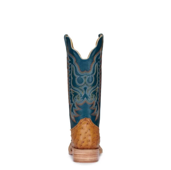 R. Watson Men’s 13″ Wide Square Toe Antique Saddle Brucciato Full Quill Ostrich with Royal Blue Cowhide Top, Double Stitched Leather Outsole with All Leather Block Heel and Full Cowhide Lining.