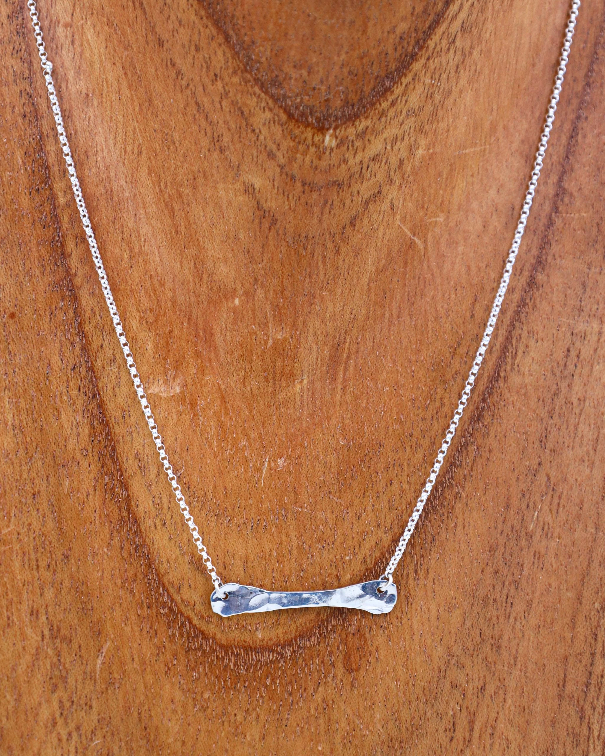A dainty hammered Sterling Silver bar necklace!
