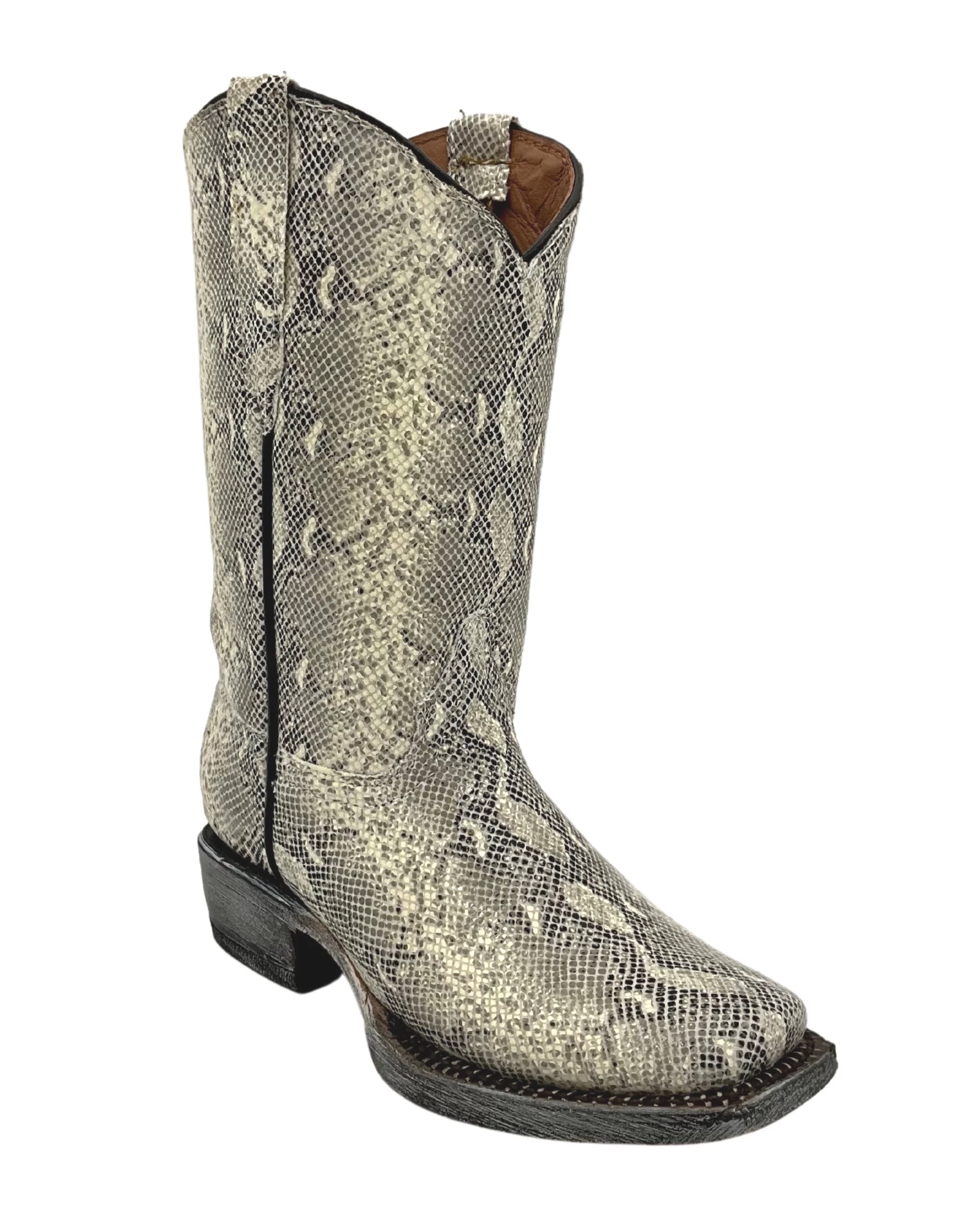 Little cowgirls will feel like the stylish new sheriff in town in these adorable python print cowgirl boots. An elevated heel boosts this pair up for high fashion appeal, while soft leather details the entirety of the fabulously feminine Western-style girl boot.