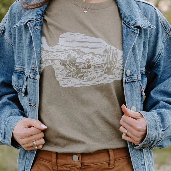 This Arrowhead Landscape T-Shirt was designed with West Texas in mind. Featuring cacti, mountains, and the Texas sky, this just may be the best looking arrowhead you’ve ever found.