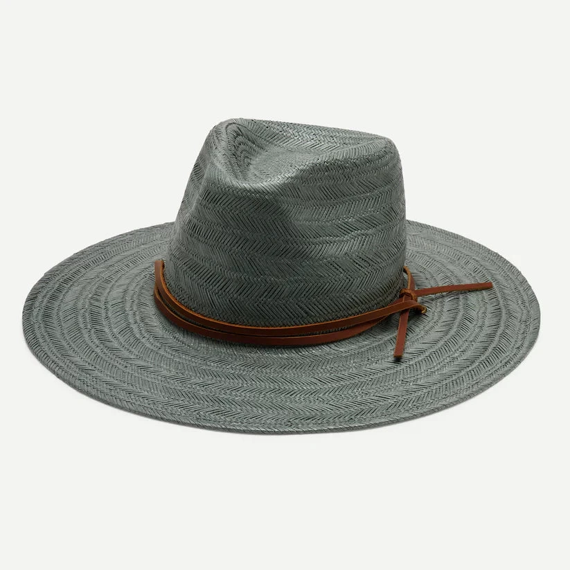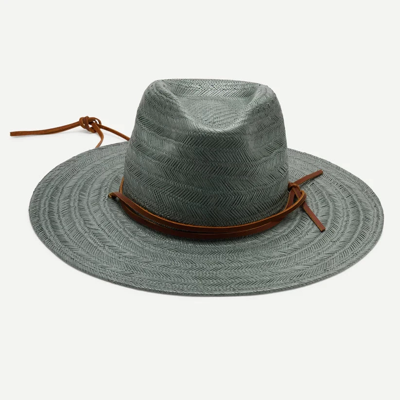 Our Frankie paper straw hat features a textural fine weave stripe pattern and is finished with a genuine leather tie band and a stampede strap, making this hat perfect for a windy day at the beach or a sunny hike.
