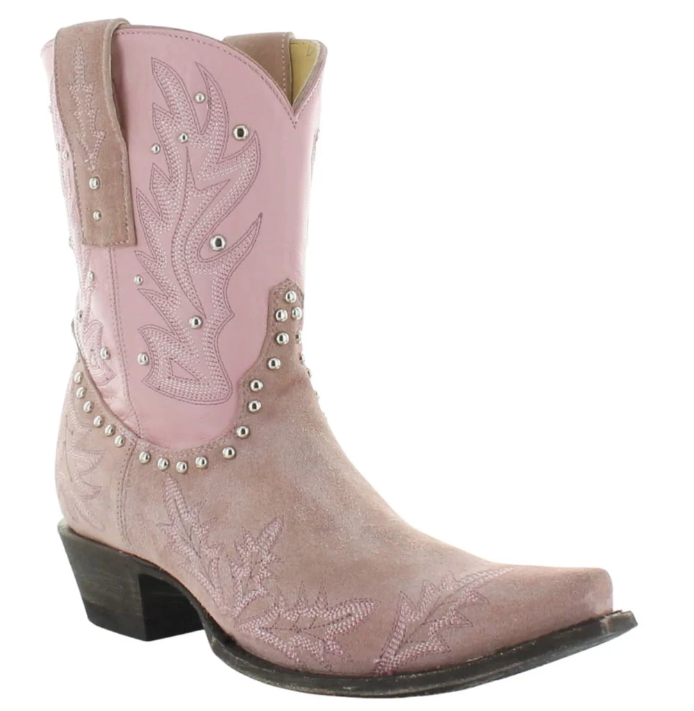 Yep, she’ll make you do a double take! The Whiplash booties by Old Gringo are turning heads FAST, but in the best way possible! Check out that beautiful baby pink leather, the subtle stitch details, and those silver stud accents. They’re the perfect height for wear year around with jeans or dresses. We love this modern twist on a classic cowboy boot design!